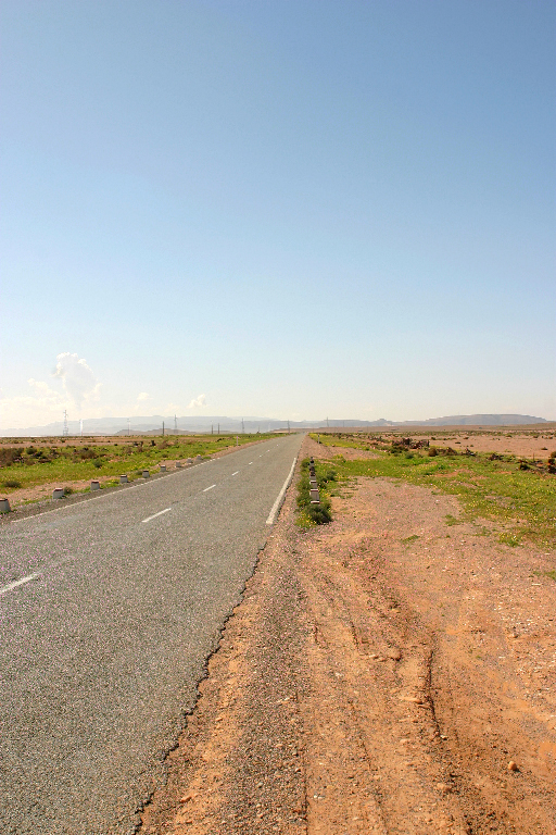 The minute we left Sidi Ifni, we headed into the mountains, for a ride which turned out to be very enjoyable, curvy mountain roads, nearly no traffic, and some excellent scenery. As soon as we got out of town though, there was a very bad accident, one of these Mercedes had been turned into scrap iron by a frontal collision with a truck. Which by the way, isn't that unusual, nearly every day we were on the road we would see one of these accidents, not a real surprise considering the way they drive. After the mountains we hit the desert, well almost, pre-desert as the plains are situated between two rows of mountains there wasn't a lot moisture to go around. Through this valley we headed south.