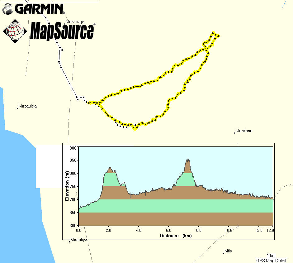 The next day after the day trip south we left Tan Tan Plage for Tiznit which was to be our stop before heading east into the border area between Morocco and Algeria. The road was the same as we had come down until Goulimine and after that there wasn't much new, a small uphill where it went over part of the Anti-Atlas but otherwise un-eventful. We had passed Tiznit on the way south, so we knew where the camping was (right at the entrance to "old" town). Tiznit is known for its Jewelry souks, so after setting up we headed into town to have a look. In the middle of a small plaza was the entrance, behind that there were a number of small shops, with all sorts of jewelry, gold, silver, and various semi-precious stones, but the majority of shops were specialized in silver jewelry. In any case we looked around and even made some inquiries into prices, but Cecilia was too undecided so we didn't buy anything. For my tastes there wasn't anything really extraordinary, but there were lots of people (women) walking around and doing some hard bargaining.
