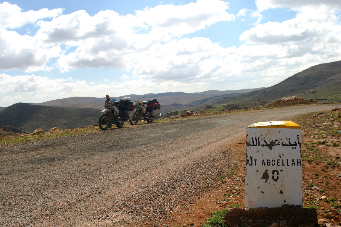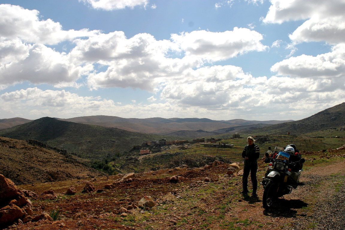 Wherever we passed people, everyone was waving us down or gesculating wildly. Often, as soon as they saw us coming, they would be running down to the road. Or if we stopped somewhere, no matter how remote it looked, in a few minutes there would be 2, 3, 4 or more people showing up out of nowhere. Once surrounded by children and/or adults they would repeat the speech "Donnez-moi, un dirham, un stilo, un cadeaux, quelque chose", until they were hoarse or you left! Basically they were begging. And the speech was pronounced so fast, in a single stream, that it took a while until I understood what they were saying. I was starting to wonder why everyone was so "friendly". We had always evoked a reaction when passing people on the roads, usually, a thumbs up or a friendly wave, but here in the mountain and easter regions of Morocco, they were really trying to get us to stop and give them something. It turns out that the friendly seniors in their camper vans, often stop and give the kids, candy, clothes, bicycles!, pens, money, whatever, and the children are equating the tourist or anyone not local with a free handout. Basically, they are turning them into beggars. We found out that a lot of the camper van brigade feel they are proving their own brand of direct development help! Something we did not find very good at all. As I said before these handouts, are effectively turning them into beggars. We witnessed a Norwegian camper van stopping in the middle of the road at a village just south of Irherm and handing stuff out the window to the gathered masses. When they finished and were starting to drive away, those who got nothing were beating on the sides of the camper, running in front trying to keep it from leaving. It couldn't have been very pleasant for them (the seniors) either.